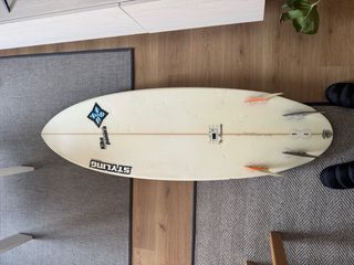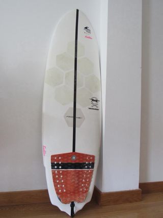 Tabla de surf Channel Islands Al Merrick. Presenta un diseño de cola de milano (swallow tail). - Diseño blanco con detalles en negro y naranja. - Incluye pads de agarre en la cola. - Patrón de hexágonos en la parte superior. - Quillas nuevas sin usar Las medidas de la tabla son 5'1*17 3/4"*2,18" 24 litros. la tabla es idéntica a las fotos (fotos sin filtros). Es una tabla versátil de alto rendimiento solo usada en piscina de olas.