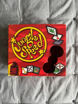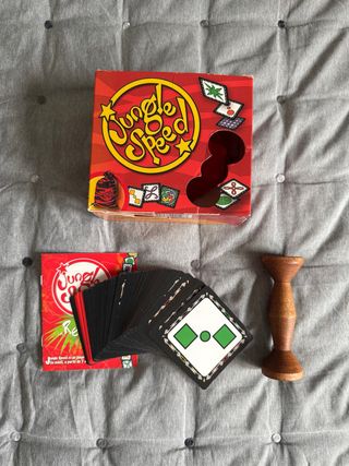 Juego de mesa Jungle Speed, ideal para partidas rápidas y divertidas. Contiene cartas con diferentes símbolos. - Incluye caja original. - Contiene cartas de juego. - Incluye tótem de madera.