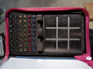 Estuche de piel con varios juegos de viaje. Diseño de Salvador Bachiller. Incluye diferentes tableros metálicos. Piezas de juego imantadas.