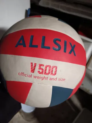 Balón de voleibol Allsix V500, con peso y tamaño oficial. En buen estado, tiene uso, pero no mucho. Hace falta incharlo.