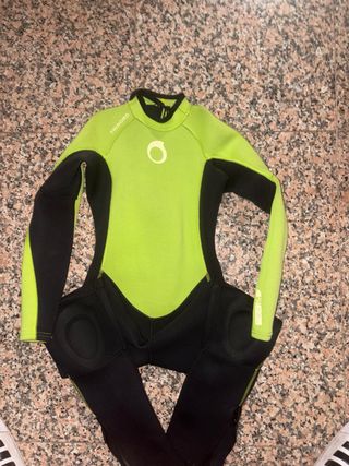 Neopreno largo de la marca Tribord, ideal para deportes acuáticos. - Color verde lima y negro. - Cierre de cremallera. - Paneles acolchados en rodillas y caderas.