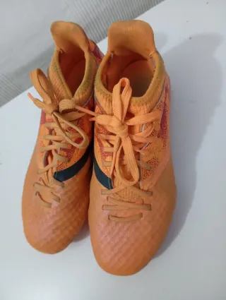 Botas de fútbol Kipsta Viralto en talla 33/34. Diseñadas para ofrecer comodidad y rendimiento en el campo. - Color naranja vibrante. - Cierre con cordones. - Diseño deportivo.