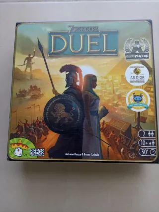 Juego de mesa 7 Wonders Duel en su edición en francés, pero completamente independiente del idioma, excepto las reglas que pueden encontrarse fácilmente en internet. - Juego para 2 jugadores. - Edad recomendada: 10+ años. - Duración aproximada: 30 minutos. - Diseñado por Antoine Bauza y Bruno Cathala. - Incluye premios Pionnier de Platine y As d'Or Jeu de l'Année Expert Cannes 2016.