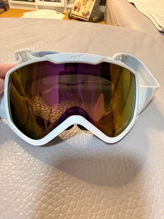 Gafas de esquí con lente doble y montura blanca. - Lente con acabado espejo. - Correa ajustable. - Talla S