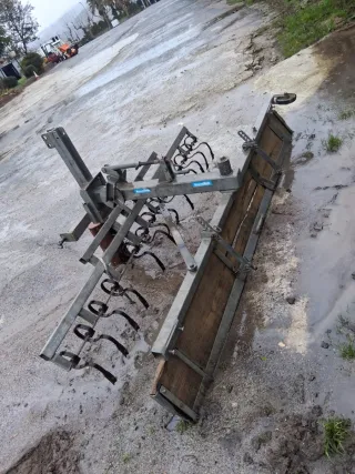 Aplanador de pista hípica de metal y madera. Rastra de hipica pista - Estructura metálica robusta. - Barra de madera para nivelar. - Dientes de rastrillo para trabajar el suelo.