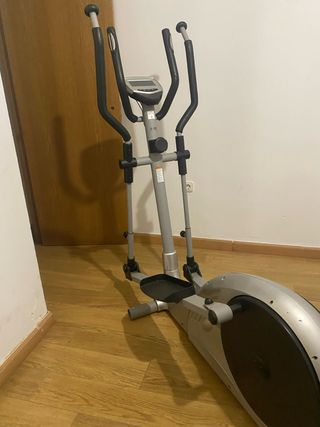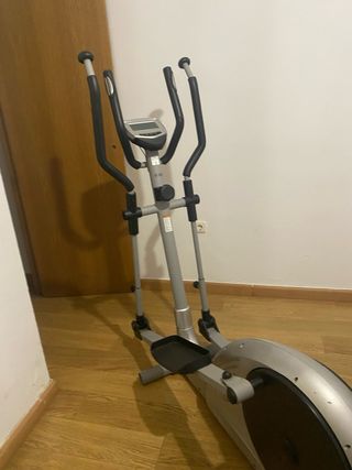Elíptica de color gris, ideal para entrenar en casa. Se encuentra en buenas condiciones. - Diseño moderno y funcional. - Pantalla digital para seguimiento de ejercicio.