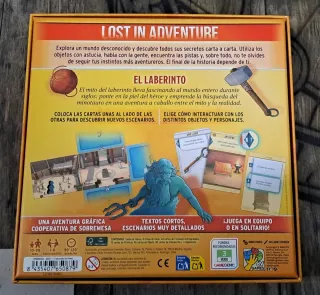 Juego de mesa Lost in Adventure: El Laberinto. Como nuevo. - Juego de estrategia y aventura. - Ilustraciones inspiradas en la mitología. - Diseñado por Marco Pranzo y Guillaume Tavernier.