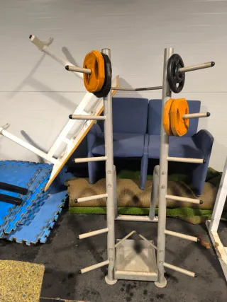 Lote de barra, mancuernas y pesas musculación