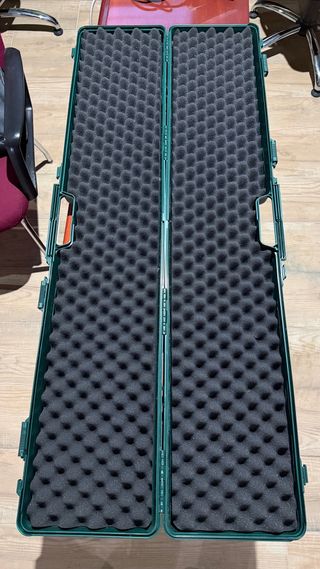 Maletín rígido de color verde para transportar rifles o escopetas. Cuenta con un asa central para facilitar su transporte y cierres de seguridad. - Diseño robusto y duradero. Maletín de gran resistencia y con acolchado interior, para una perfecta protección del arma. Fabricado en fibra rígida, presenta 4 cierres para una mayor seguridad. Dimensiones: 123 x 28 x 9 cm. Practicamente nuevo!!