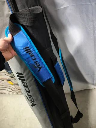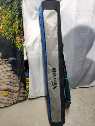 Funda para caña de surfcasting de la marca Vercelli. Diseñada para proteger tu equipo de pesca. - Color negro y azul. - Material resistente y duradero. - Cierre de cremallera gruesa . Varios compartimentos Para 4 cañas de 4'20 sombrilla de playa y 4 pinchos El culo algo desgastado y con algún roce