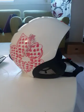 Casco de esquí alpino para niña de la marca CEBE. Talla XXS de 50 a 52cm. Recomendado entre 4 y 7 años. Tiene tres usos. Diseñado para ofrecer protección y comodidad en la montaña. - Color blanco con detalles en rosa. - Diseño moderno y seguro.