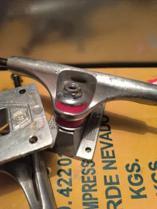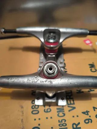 Set de ejes/trucks T147 para skate marca THUNDER, listos para montar. 20cm de ancho, Usados 2 tardes. Los cambie por unos más anchos para mí tabla de 8,5 Incluye ruedas de 52mm.duras, usadas 4 ratos