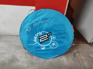Tienda de campaña como nueva. Es la versión Easy, que se recoge fácilmente tirando de un cable. Completa con la funda y las piquetas