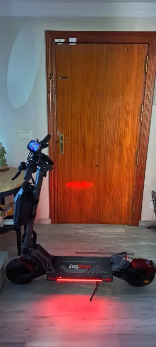 Patinete eléctrico Ecoxtreme M41 con doble motor y acabado en color rojo. !Homologado! Limitado a 25km/h Solo 1 mes y medio de uso. Perfectas condiciones y como nuevo. Negociable! - Diseño deportivo y robusto. - Manillar con puños de goma para un mejor agarre. - Bolsa de transporte frontal. - Ruedas todoterreno. Incluyo el casco con la compra.