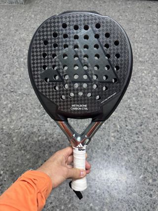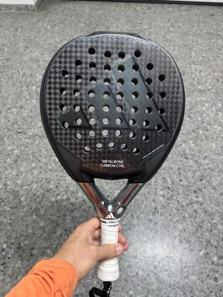 Pala de pádel Adidas Metalbone Carbon Ctrl en buen estado. Diseñada para un control óptimo en el juego. - Superficie con acabado de carbono. - Diseño con agujeros para mayor aerodinámica. - Grip blanco para un agarre firme.