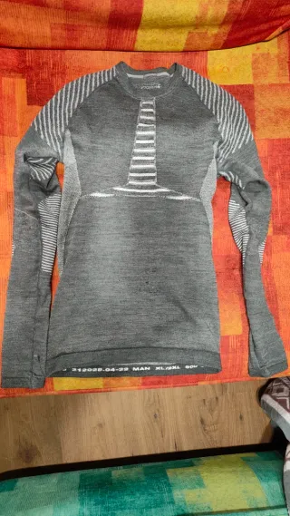 Camiseta térmica de lana merino, ideal para esquiar o actividades de montaña. Diseñada para ofrecer confort y calidez. -Talla XL - Material: Lana merino. - Color: Gris jaspeado. - Diseño: Manga larga.