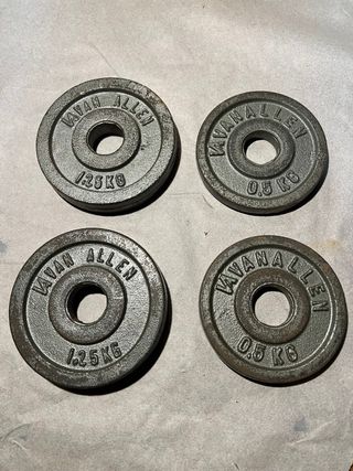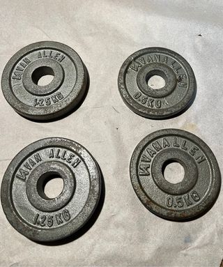 Para quedar en centro Granada, por Plaza Trinidad. Conjunto de discos de pesas de la marca Kavan Allen. - Dos discos de 0.5 kg. - Dos discos de 1.25 kg. - Material: Hierro fundido.