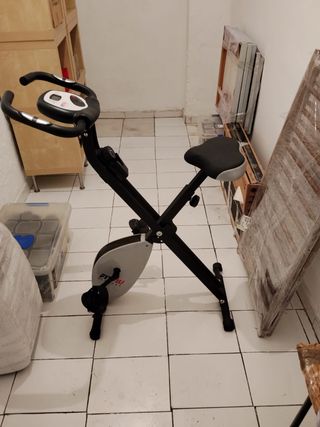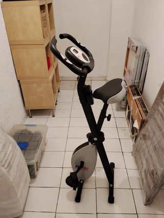 Bicicleta estática de nivel principiante, ideal para entrenamientos en casa. - Diseño plegable para fácil almacenamiento. - Pantalla digital para seguimiento de métricas. - Asiento ajustable en altura.