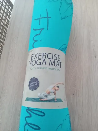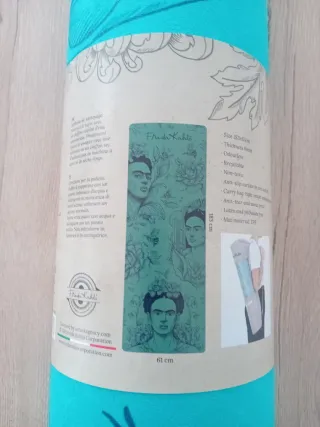 Esterilla de yoga con diseño inspirado en Frida Kahlo. Perfecta para tus sesiones de pilates, entrenamiento o meditación. - Incluye bolsa de transporte. - Diseño en color turquesa con motivos florales.