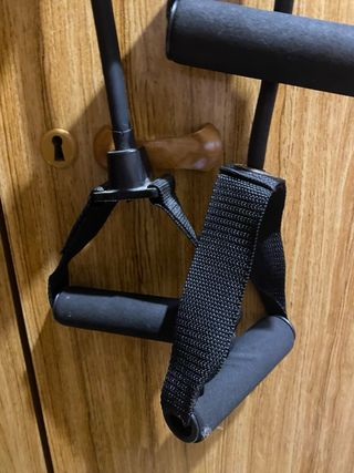 Set de bandas de resistencia para entrenamiento en casa o gimnasio. Incluye asas para un agarre cómodo. - Bandas elásticas de látex. - Asas acolchadas. - Ideal para ejercicios de fuerza y tonificación.