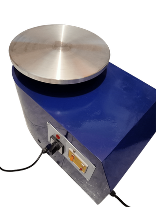 Torno de cerámica VEVOR en color azul. Cuenta con una base metálica y un plato giratorio de acero inoxidable. Ideal para crear tu propia cerámica desde casa. Prácticamente nuevo (1 sola vez usado), y en embalaje original. La rueda eléctrica de cerámica VEVOR tiene velocidad ajustable de 0-300 rpm, pedal de control y herramientas incluidas, perfecta para principiantes y amantes del arte. Fácil de usar, estable y lista para empezar a crear tazas, cuencos o jarrones únicos desde el primer día.