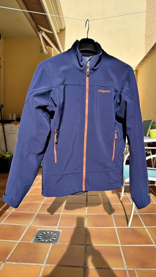 Chaqueta softshell, modelo Adze, marca Patagonia en talla S. seminueva. Chaqueta muy técnica para montañismo y escalada, elástica, cortavientos, resistente al agua, con cuadrícula de forro polar interior muy transpirable. Es una talla S americana que equivale a una talla M un poco ajustada. Bolsillos laterales que no interfieren con el arnés, una pasada.