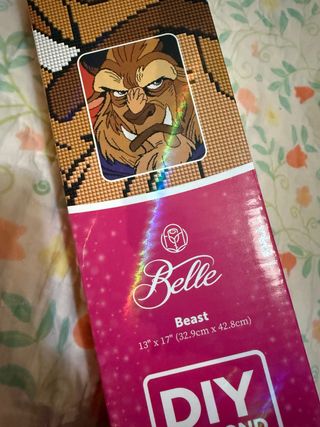 Kit de pintura de diamantes de La Bella y la Bestia de Disney. Contiene todo lo que originalmente venia en la caja. - Tamaño: 32.9cm x 42.8cm. - 12 colores con varios diamantes especiales. Precio no negociable