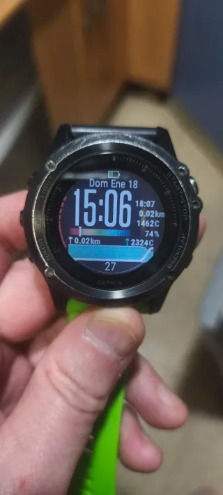 Reloj deportivo Garmin Fenix 3 con lente de zafiro. Diseñado para atletas y aventureros. - Bisel y caja de acero inoxidable. - Correa de silicona. - Pantalla a color. - GPS integrado. Signos de desgaste en bisel pantalla intacta y durísima