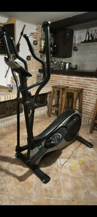 Elíptica de color negro y gris, ideal para entrenar en casa. - Diseño moderno. - Pedales amplios. - Manillar ergonómico.