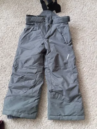 Pantalón de esquiar de la marca Quechua, ideal para actividades en la nieve. Su diseño es moderno y funcional. - Color gris claro. - Cremalleras en los bolsillos. - Tirantes ajustables.