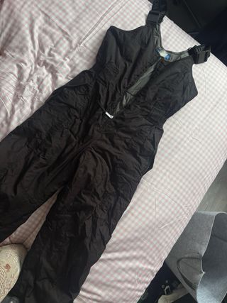 Peto de esquí en color negro, diseñado para la práctica de deportes de invierno. - Tirantes ajustables. - Cremallera frontal. - Bolsillos laterales.
