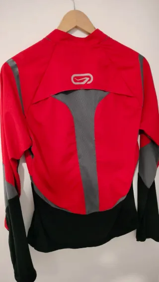Camiseta de manga larga para running de la marca Kalenji. Diseñada con bloques de color para un estilo deportivo. - Color principal rojo con detalles en negro y gris. - Cremallera frontal parcial. - Tejido técnico transpirable. Aberturas para transpirar.