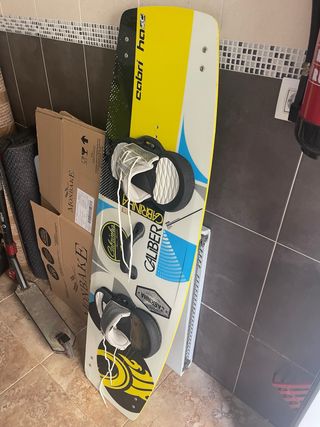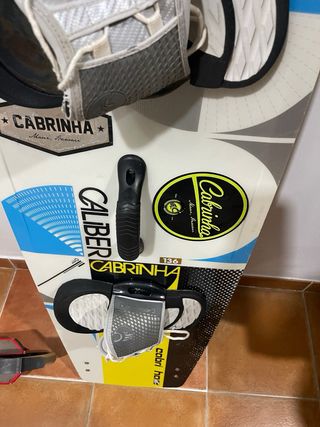 Tabla de kitesurf Cabrinha Caliber en buen estado. Lista para disfrutar del agua. Medidas 136x42 - Diseño llamativo en amarillo y blanco. - Incluye footstraps. - Marca: Cabrinha Caliber