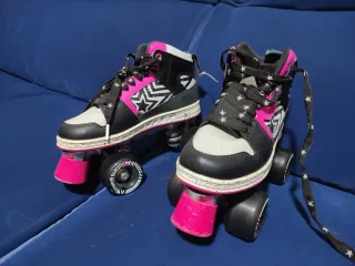 Patines clásicos de estilo roller derby en color negro y rosa talla 36 No se han usado, se ve en las ruedas aún transparentes. - Diseño de caña alta. - Ruedas semitransparentes blandas. - Freno delantero.