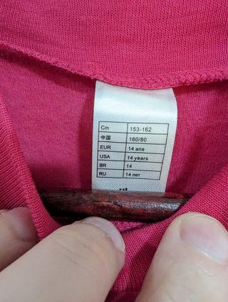 Polar de manga larga en color rosa, ideal para actividades al aire libre o como capa base. - Cuello alto. - Costuras raglán para mayor comodidad. - Pequeña etiqueta de la marca en el hombro. - De Decathlon, Talla 14 años.