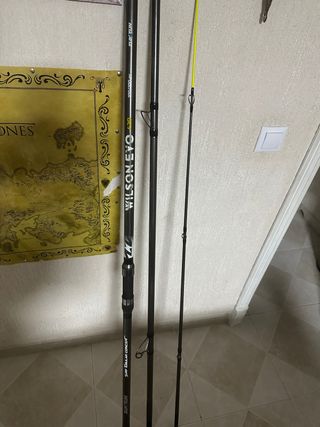 Caña de pescar Zun Zun Wilson Evo 420. Solo usada 1 vez, el carrete incluye doble cabezal. También pincho y funda. - Modelo: Wilson Evo 420 - Marca: Zun Zun - Acción: 100/200g - Concepto: Surf Dollar Concept