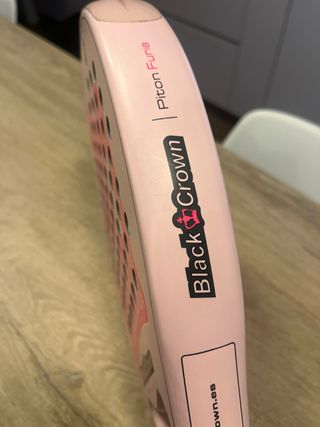 Pala de pádel Black Crown Piton Furia en color rosa. - Diseño con detalles en negro y rosa. - Logo de Black Crown visible.