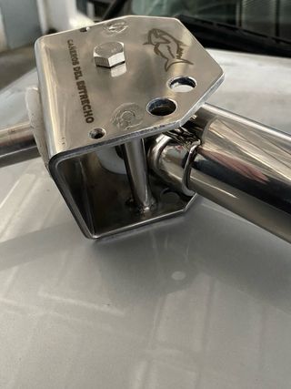Cañero de pesca fabricado en acero inoxidable, con un diseño robusto y acabado brillante. - Material: Acero inoxidable. - Grabado: Cañeros del Estrecho y logo de un atún -Sirve tanto para cañas de mango recto como curvo -No necesitarás ni silla ni torre de combate -Son giratorios y abatibles cualquier duda no dudes en pedir más información