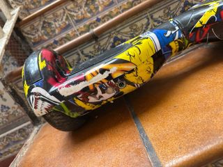 Hoverboard eléctrico con un llamativo diseño de graffiti. - luces LED. - Plataformas antideslizantes. - Incluye Bolsa de transporte - Usado 2 veces - Batería carga y funciona perfectamente
