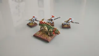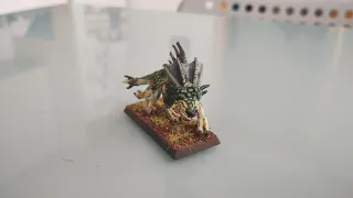 Salamandra Seraphon con tres eslizones de dotación. Para un ejército Warhammer de hombres lagarto. Miniaturas de metal pintadas a buen nivel. Warhammer, oldhammer, Warcry, infinity, Warhammer 40k, AOS, warmachine, King of war, mordheim, frostgrave, kill team, imperio, altos elfos oscuros, sombríos, skavens, hombres lagarto, condes vampiro, enanos, necrones, tau, marines espaciales, hombres bestia, mercenarios, elfos silvanos, age of Sigmar, 40000 ESDLA, Necromunda, cultistas, redencionistas, orcos y goblins, Blood bowl, tyranidos, cursed city