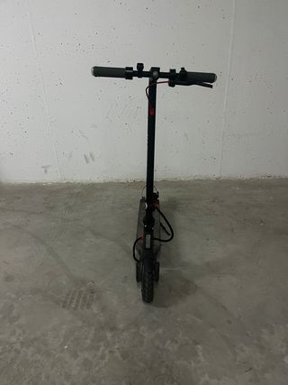 Patinete eléctrico en color negro, comprado el año pasado. - Diseño moderno y funcional.corre veinte cinco km/h y dura entre 15 y 20 km. -Pantalla digital en el manillar. -Freno de mano. -Puños grises en el manillar y intermitentes. -Viene con cargador.