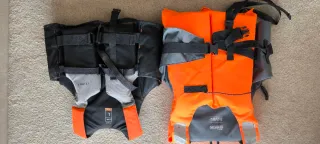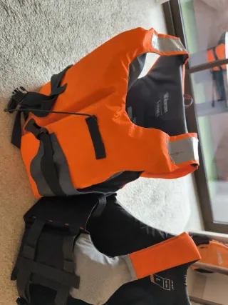 Se venden dos chalecos salvavidas en buen estado,utilizado 4 veces comprado en Decathlon. - Chaleco negro y gris. - Chaleco naranja y gris. - Cierres de hebilla y velcro.