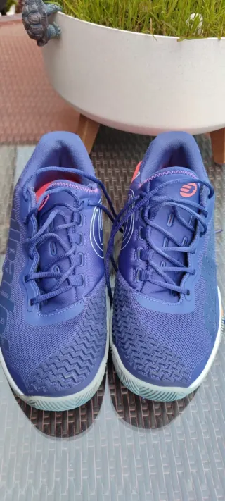 Zapatillas de pádel Bullpadel en color azul y detalles en coral. - Diseño deportivo. - Suela de goma. - Cierre de cordones.
