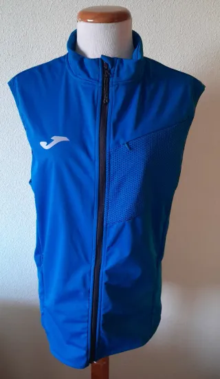 Chaleco deportivo Joma en color azul, perfecto para actividades al aire libre. Nuevo con etiqueta - Diseño sin mangas. - Cremallera frontal. - Bolsillos laterales y uno en el pecho, todos con cremallera.