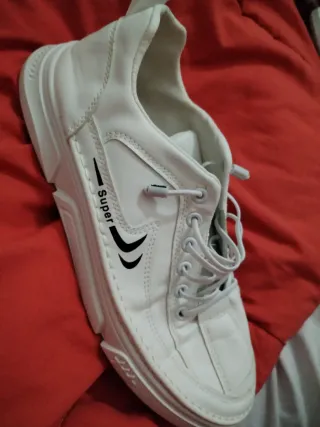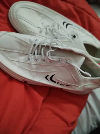 Zapatillas de hombre, estilo casual en color blanc de polipiel, talla 44. Necesitan unas plantillas las utilice para otras zapatillas, puestas en dos ocasiones, - Diseño con cordones. - Detalle de logo y texto Super en el lateral.