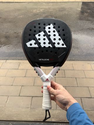 Pala de pádel Adidas Metalbone HRD. - Diseño con acabado en carbono. - Logo de Adidas en blanco. - Grip blanco con relieve.