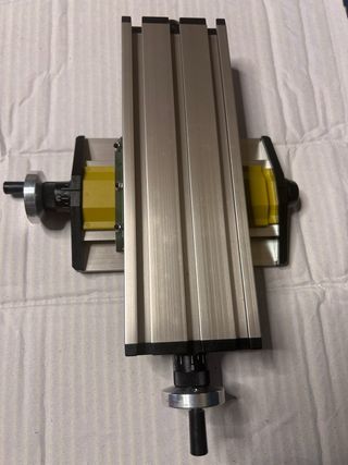 Mesa de coordenadas Proxxon KT 70. - Construcción robusta de aluminio. - Movimientos precisos en dos ejes. - Ideal para trabajos de precisión. *Faltan las garras tensoras