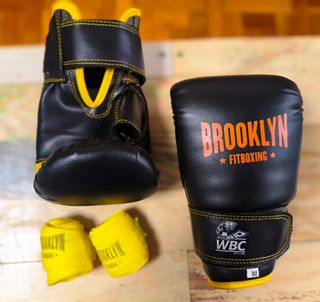 Par de guantes de boxeo Brooklyn Fitboxing en talla S. Incluyen vendas y bolsa original. Totalmente nuevos.