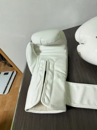 Par de guantes de boxeo de la marca Leone. - Color blanco con detalles en dorado. - Diseño con el logo LEONE 1947 WHITE GOLD. Estan nuevos solo con 1 mes de uso Doy vendas con los guantes Son de 12 onzas