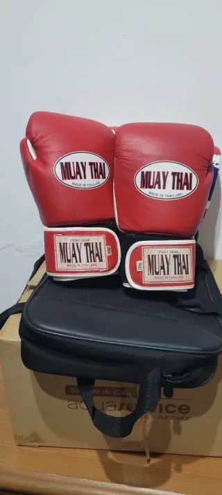 kit Guantes de boxeo Muay Thai Contact Leone y pelota reflejos. Diseñados para entrenamiento y competición. - Marca: Fairtex /Leone/Muay Thai - Fabricados en Tailandia - Cierre de velcro
